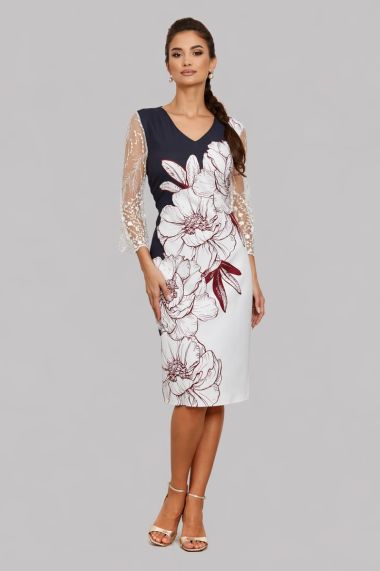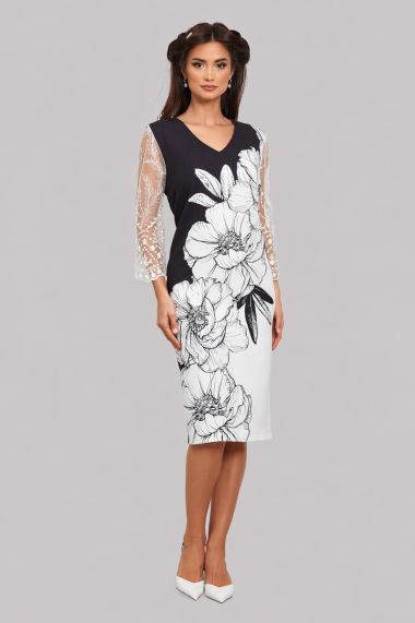 Texture crepe, embroidery, flower print, tulle